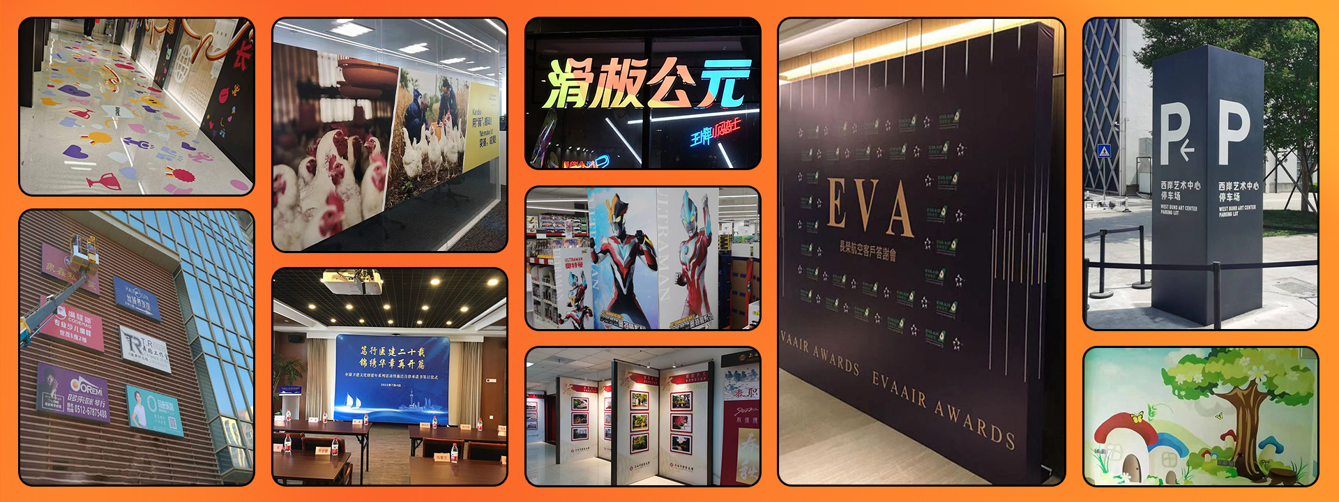 目前本公司经营范围主要有:户内、户外写真,喷绘的制作及安装,展示器材的销售,会展服务,有机制品的雕刻及安装,商场及专卖店铺的装饰,户内、外灯箱制作,超薄灯箱制作及安装,路演及超市促销活动的策划及执行。
